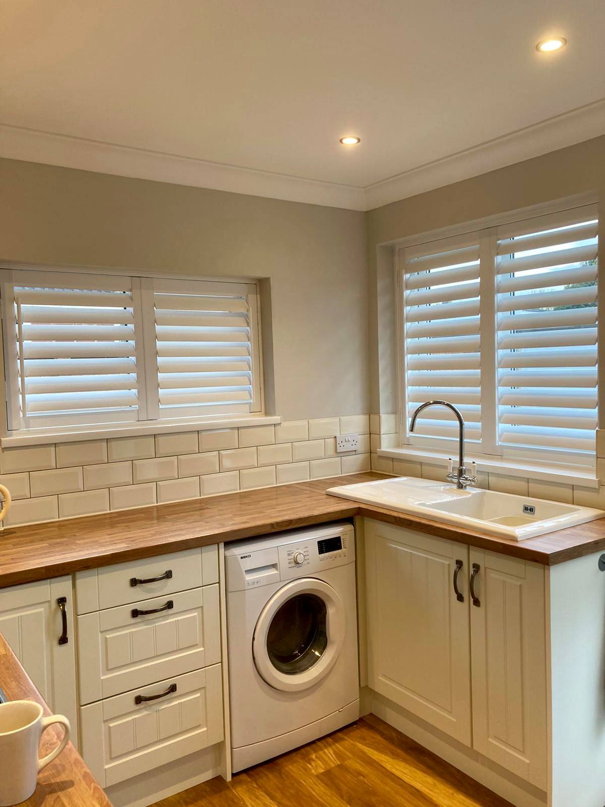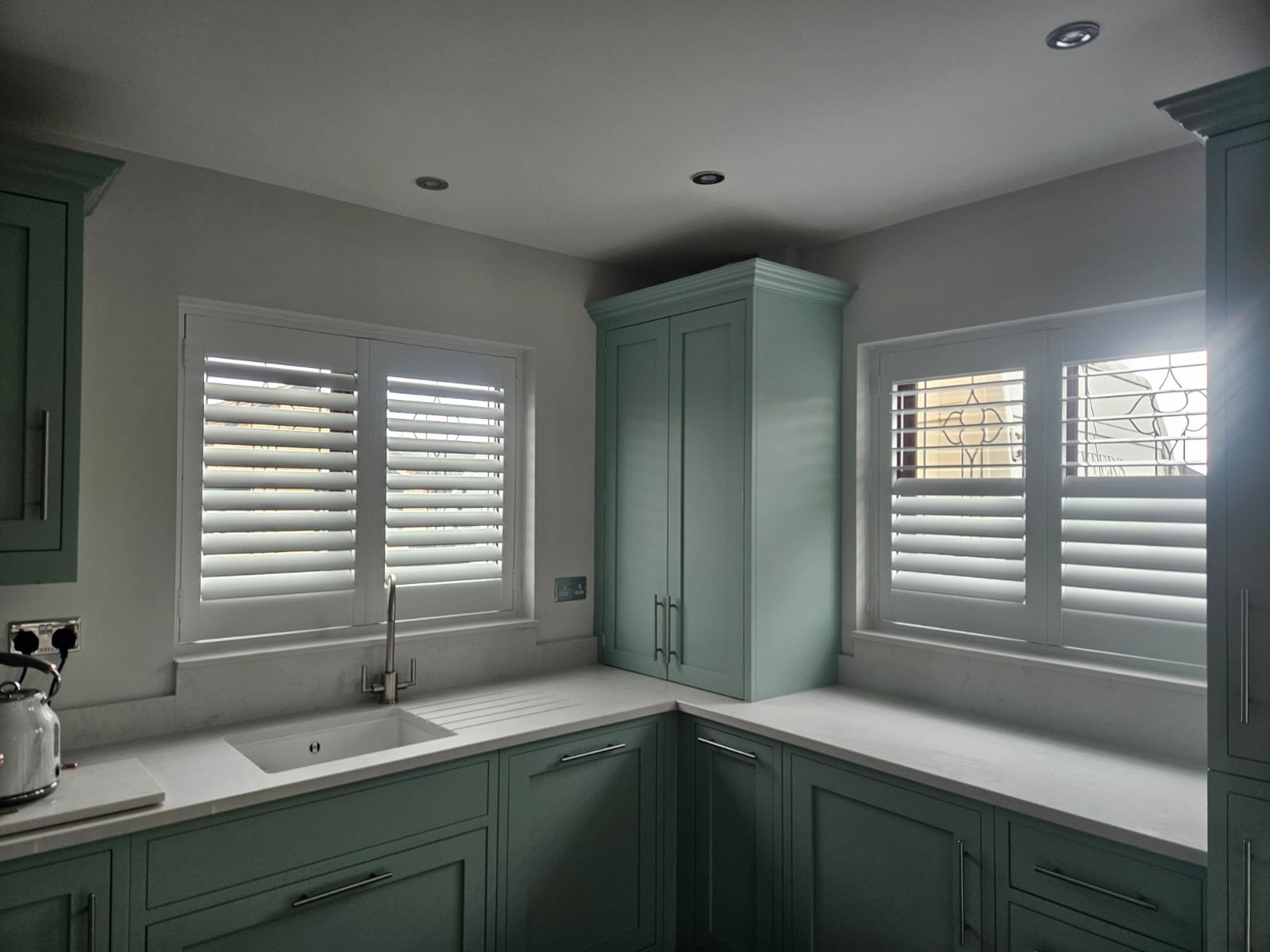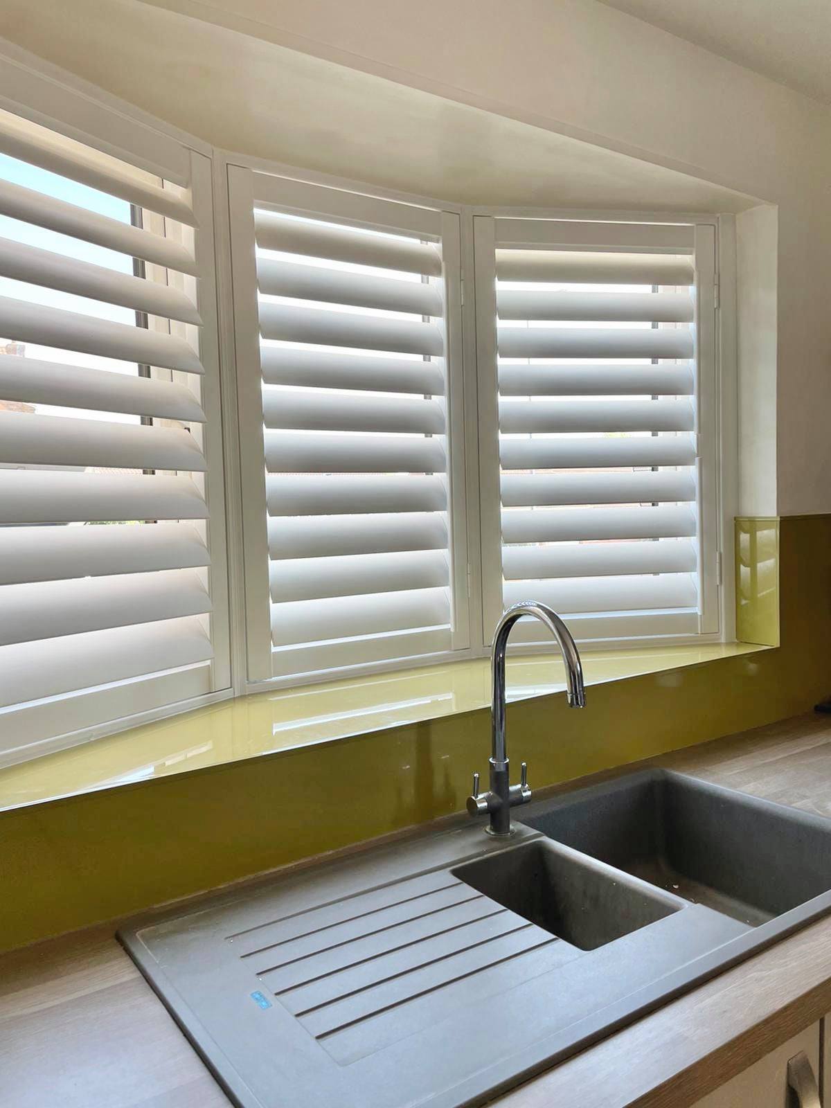 Getting window coverings to fit in Kitchens can be troublesome, as there always seems to be a sink, tap or unit to avoid! Our Kitchen Shutters are totally bespoke and designed around your room, so we can always achieve a great-looking solution.