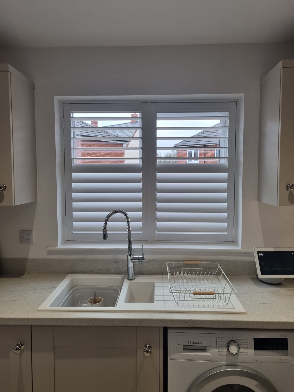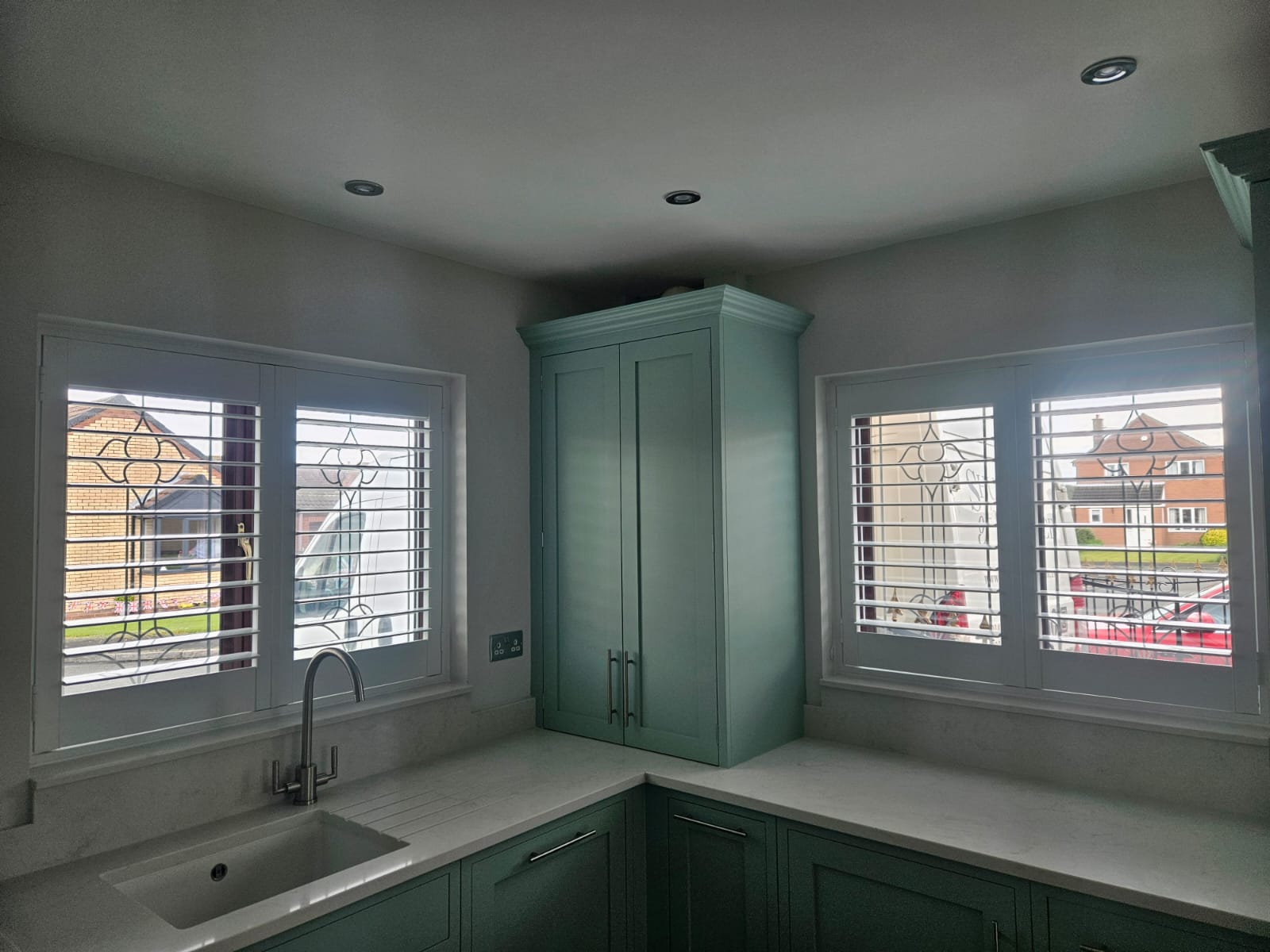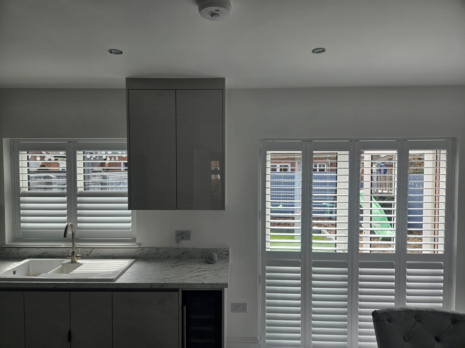 Getting window coverings to fit in Kitchens can be troublesome, as there always seems to be a sink, tap or unit to avoid! Our Kitchen Shutters are totally bespoke and designed around your room, so we can always achieve a great-looking solution.
