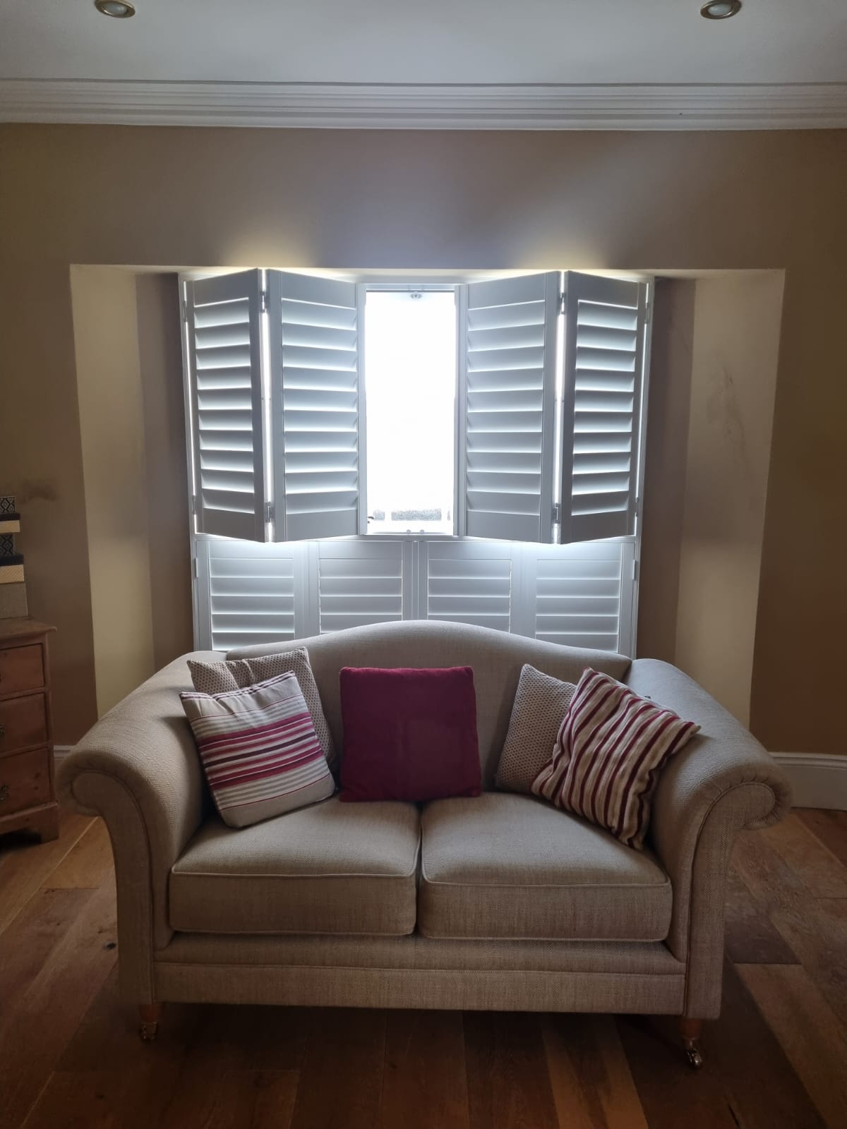 Tier on Tier shutters consist of two separate panels that move independently from each other allowing different levels of light and privacy. An ideal solution to access upper windows whilst maintaining privacy in the lower section.